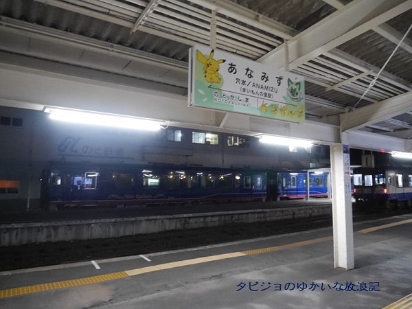さて、穴水駅にやってきました。辺りはもう真っ暗。