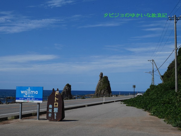 正解は、右側の岩が「トトロ岩に見える権現岩」なのです。この看板もトトロ岩になっています(*^-^*) ですが、この看板の形が実際の岩と少し違っているのにお気付きでしょうか??以前はこの看板と同じように両耳に見えていたこの岩なんですが、向かって右側の耳が今はありません。。。これは能登半島沖地震により、崩壊してしまったようです( ノД`)シクシク… じゃ、可哀想だから耳を作ってあげれば?と思われる方もいらっしゃるかもしれません。。。でもこの岩は、日本海の荒波によって長い年月をかけて削られて自然に出来た岩なんですよね。なので敢えてそのまま、今も自然の姿で立ち振る舞ってくれているのだと思います。それでも、元気に姿を見せてくれていましたし、このフォルム、癒されますよね~(*^-^*) トトロ、大好きです(*^-^*)