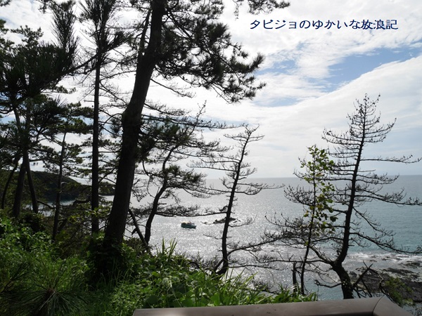 さて、大自然を満喫したのち、来た道を戻ります。途中で休憩がてら海を見ると、遊覧船が見えました。